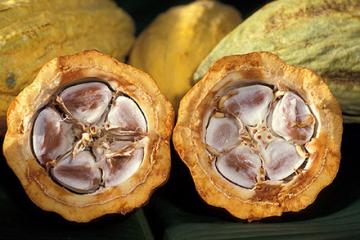 Cocoa beans—the source of chocolate— in a cacao pod. (Keith Weller, K4636-14)