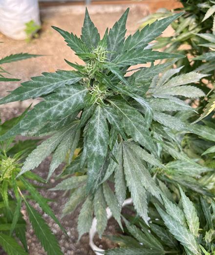 Powdery mildew on a hemp plant.
