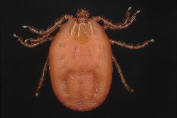 The Asian longhorn tick (Haemaphysalis longicornis) is one of the important economic pests ARS scientists are studying. (Photo courtesy of Perot Saelao)