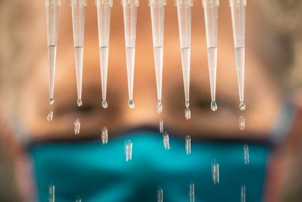 ARS research leader Lanie Bilodeau uses a pipet to as part of an effort to examine a region in a gentle Africanized honey bee genome that contributes to reduced colony defensive behavior. (Photo by Lance Cheung, USDA)