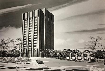 Though the building was not finished, librarians moved in in May 1969. They answered patron questions and filled research requests while construction workers kicked up dust around them. Doors opened to the public on August 1. The building was officially complete in November 1969.