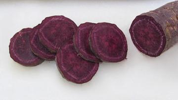 Purple sweetpotatoes are high in beneficial phytochemical nutrients called anthocyanins. ARS and North Carolina State University researchers found a way to preserve anthocyanin content during processing into juice or natural colorants. (Photo by Van-Den Truong, D3099-1)