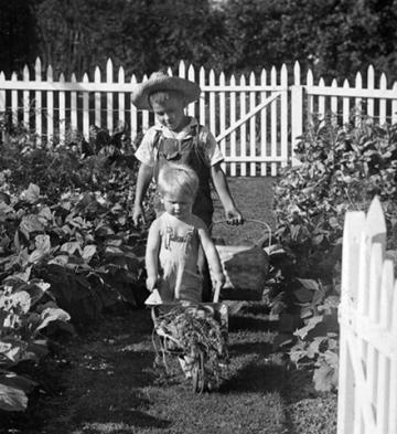 Victory Gardens involved the whole family, July 1942. (J. Horace McFarland Papers, Special Collections, USDA National Agricultural Library, D4371-1)