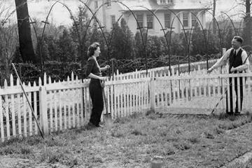 Neighbors discuss plans for their Victory Gardens, April 1943. (J. Horace McFarland Papers, Special Collections, USDA National Agricultural Library, D4372-1)