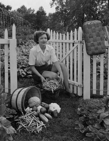 Harvesting vegetables from a Victory Garden, July 1944. (J. Horace McFarland Papers, Special Collections, USDA National Agricultural Library, D4371-1)