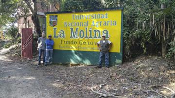 In Peru, ARS entomologist Ron Ochoa (left) stands with collaborating entomologists Javier H. Maldonado and Alexander R. Rodriguez at the entrance to the experimental research station where they looked for plant-damaging mites. (Ron Ochoa, D4241-1)